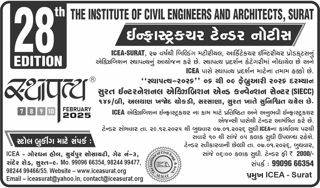Established in 1966; The Institute of Civil Engineers and Architects, Surat popularly known as ICEA is an apex body of practicing Architects, Civil Engineers, Interior Designers, Urban planners and those affiliated to the field i.e. Civil Contractors and Surveyors. Low profile yet vibrant; humble in approach but effective and an non-profit professional Institution but serves the City of Surat and the surrounding region for its infra-structure development and more particularly the Construction industry at large.